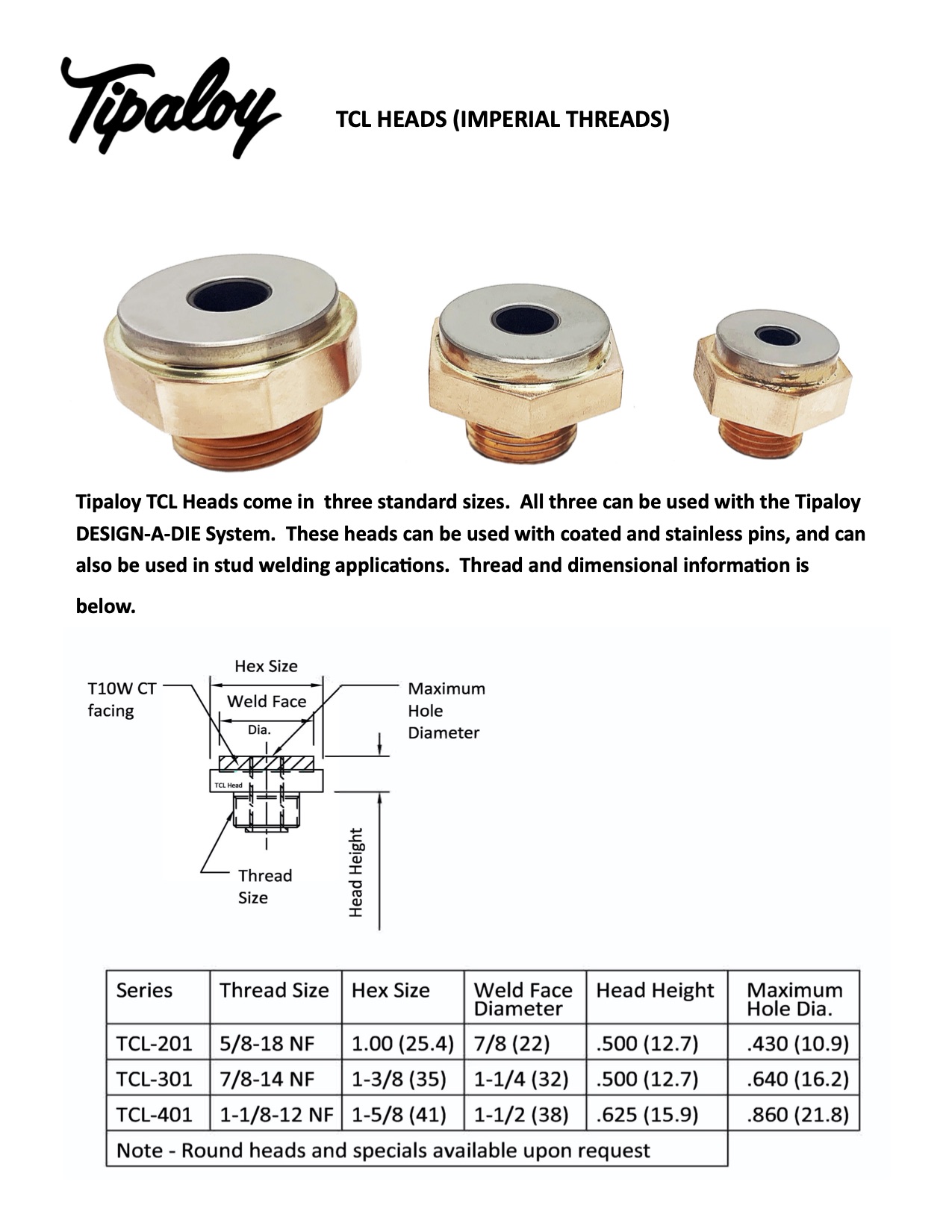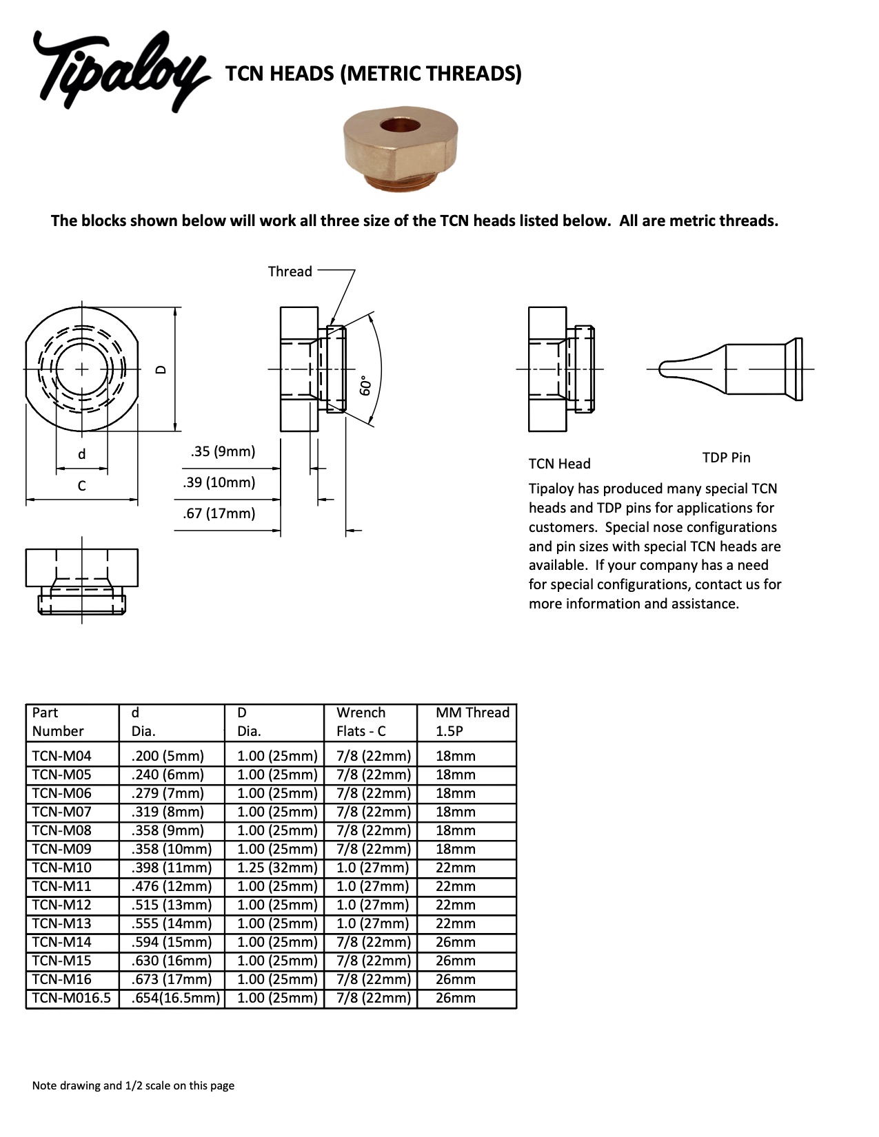• Available for TCN heads and pins