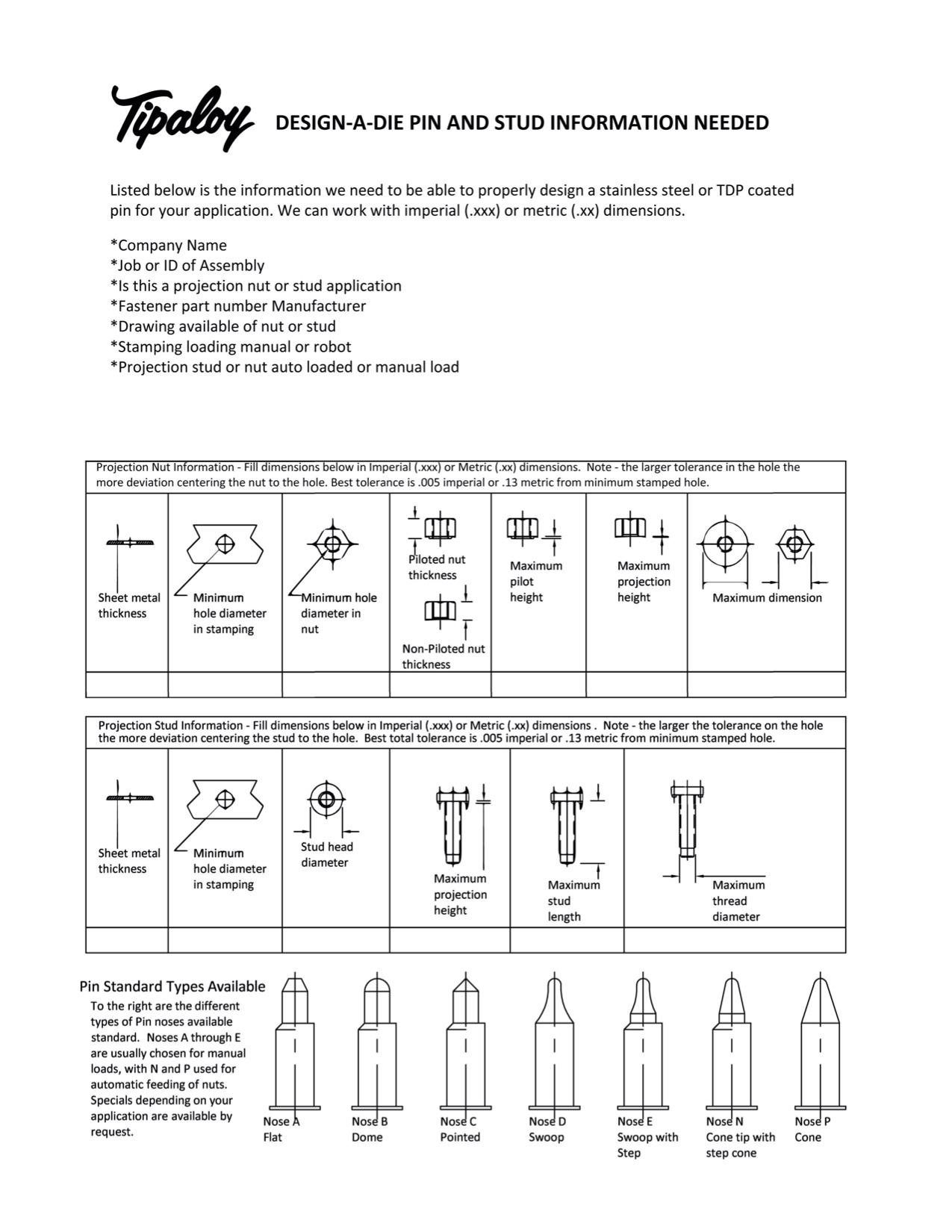 Pin & Stud Information