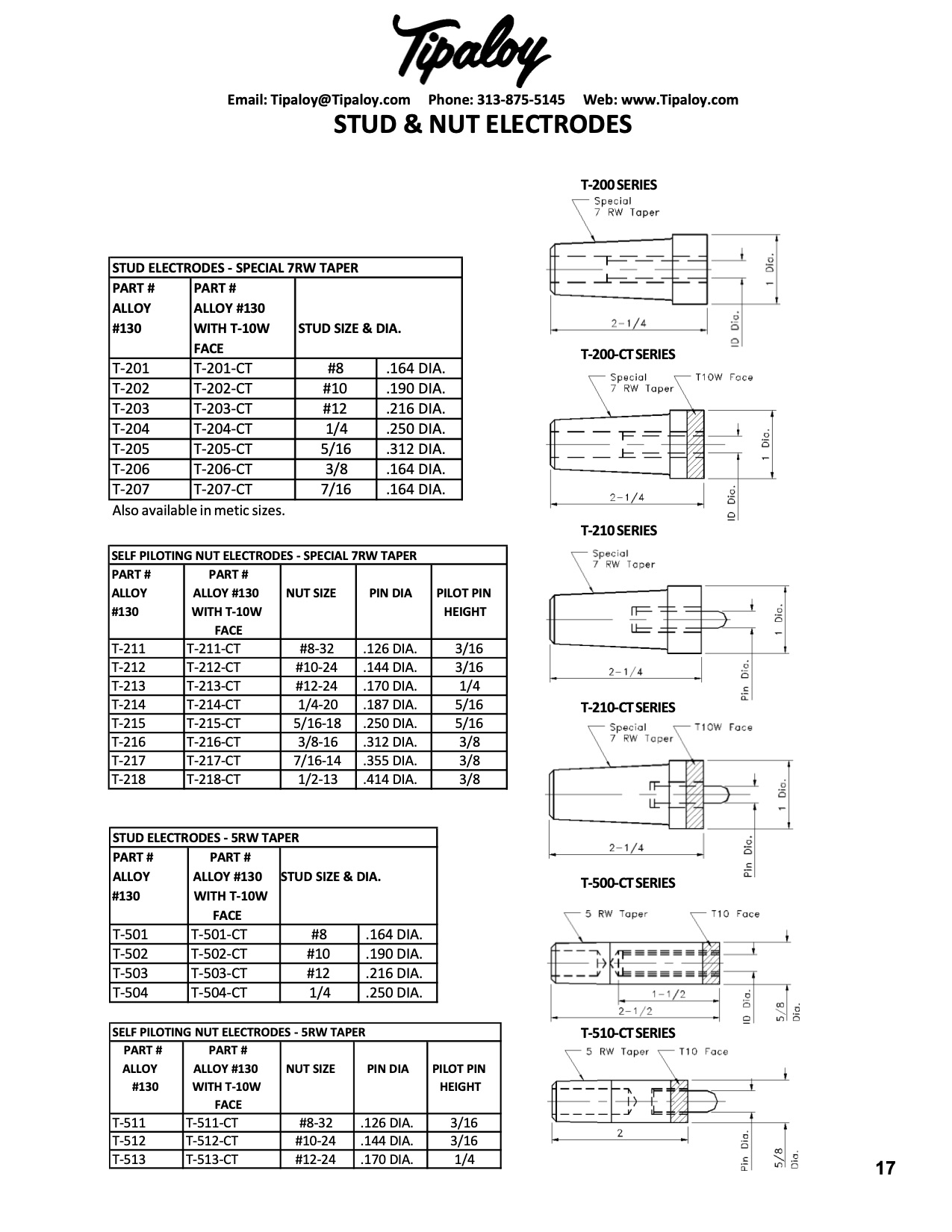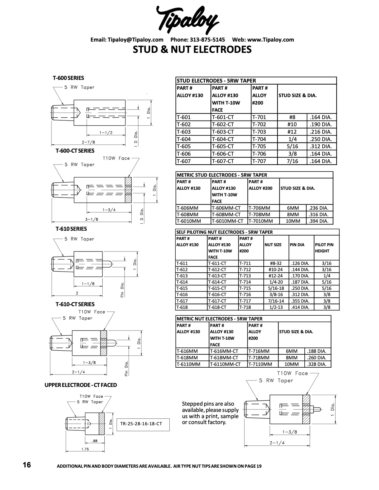 Tipaloy manufactures and stocks a large variety stud and nut welding electrodes in both standard and metric sizes. Contact a Tipaloy representative today for a competitive quote.
